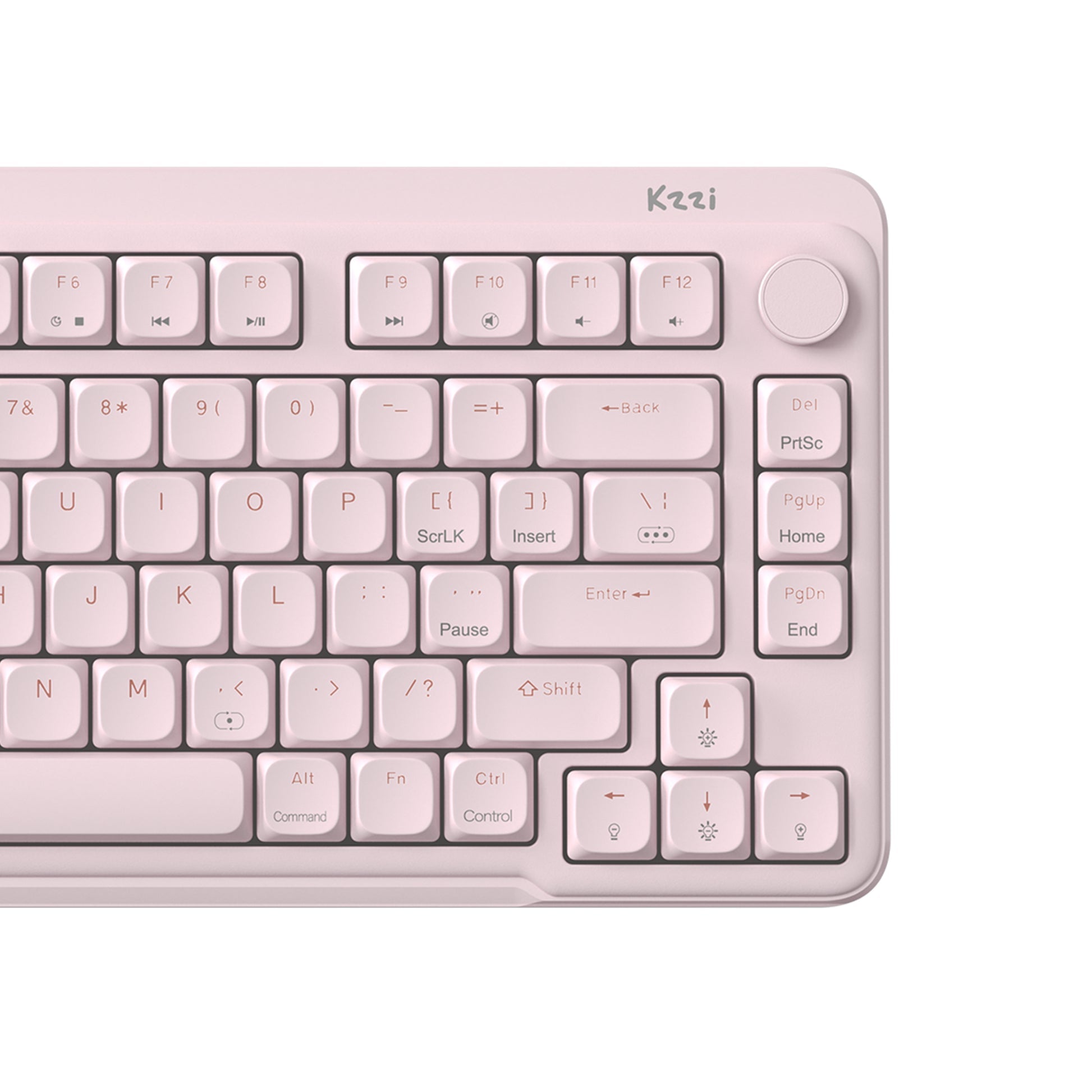 The I75V2 continues KZZI's signature ultra-slim low profile design with an integrated volume knob. Featuring a separate F row and arrow keys to prevent mistyping, plus a slightly sunken front design for comfortable wrist positioning. At only 8.8mm at its thinnest point, this ergonomic keyboard is the perfect tool for extended typing sessions—no wrist rest needed.