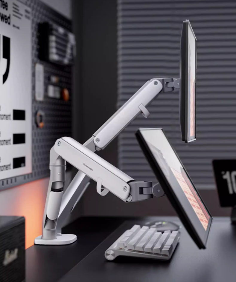 Humanmotion T6-2G Modern Dual Monitor Arm White