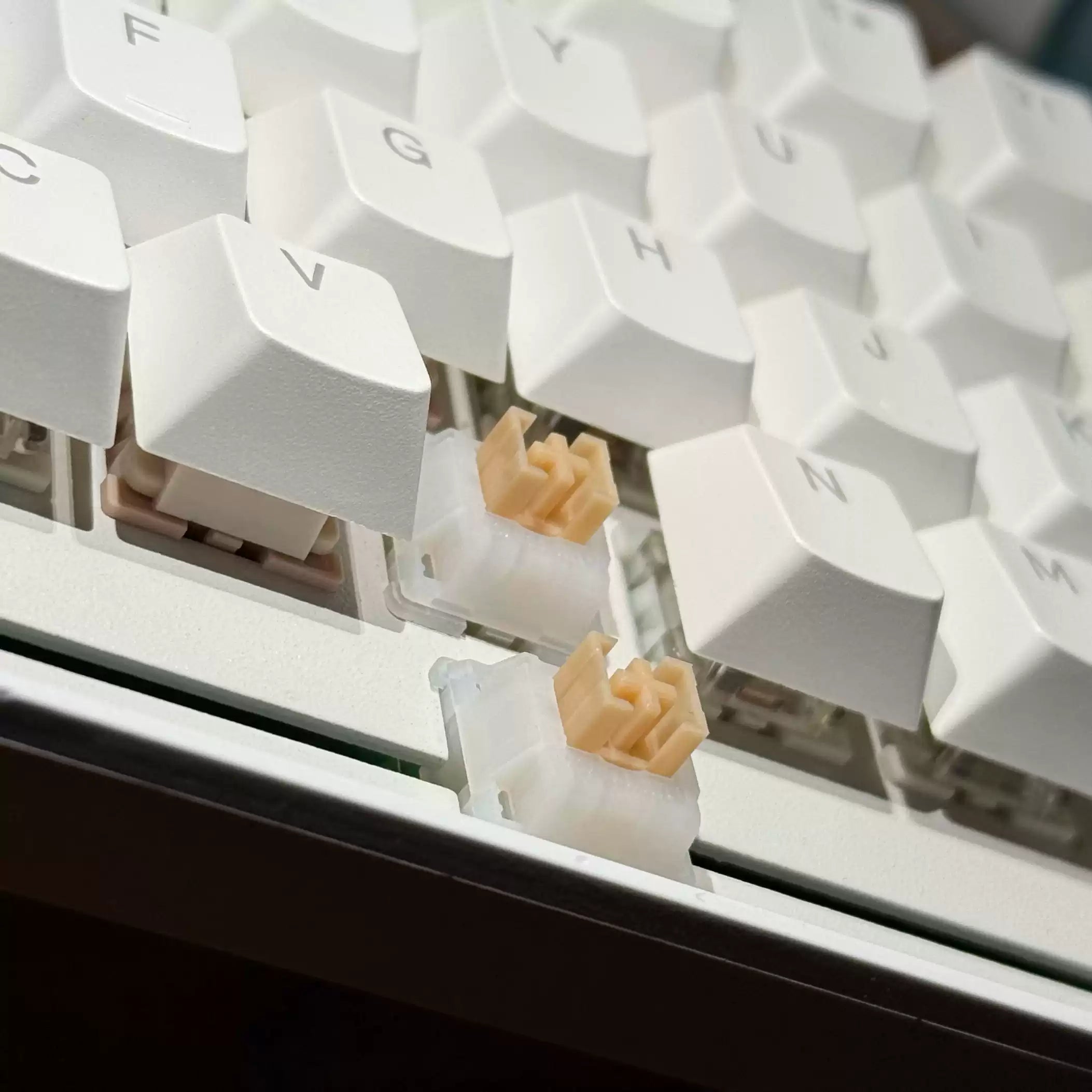 These switches are compatible with most mechanical keyboards that support MX-style switches. The 5-pin PCB mount design ensures stable installation with excellent consistency. As the third generation in Outemu's silent tactile evolution (upgraded from the popular Cream Yellow), the Silent Yellow Jade incorporates refined molds similar to Gazzew's acclaimed Boba U4 design, featuring silencing pads on the stem rails for effective noise reduction. The translucent jade yellow housing adds a unique visual flair while the dustproof POM stem ensures longevity and minimal wobble. Perfect for office environments, streaming setups, or any situation where you need the tactile satisfaction of mechanical switches without disturbing others.