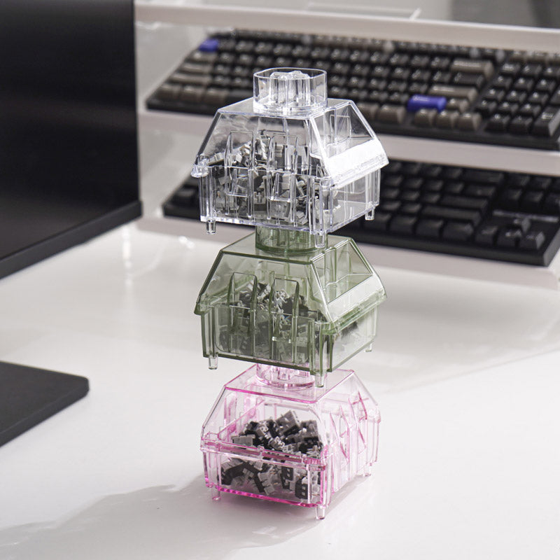 Mit diesen praktischen Schalterbehältern bleiben Ihre mechanischen Tastaturschalter organisiert und geschützt! Diese stapelbaren Boxen sind in transparentem Weiß, verspieltem Pink und erfrischendem Grün erhältlich und eignen sich perfekt zur Aufbewahrung loser Schalter.