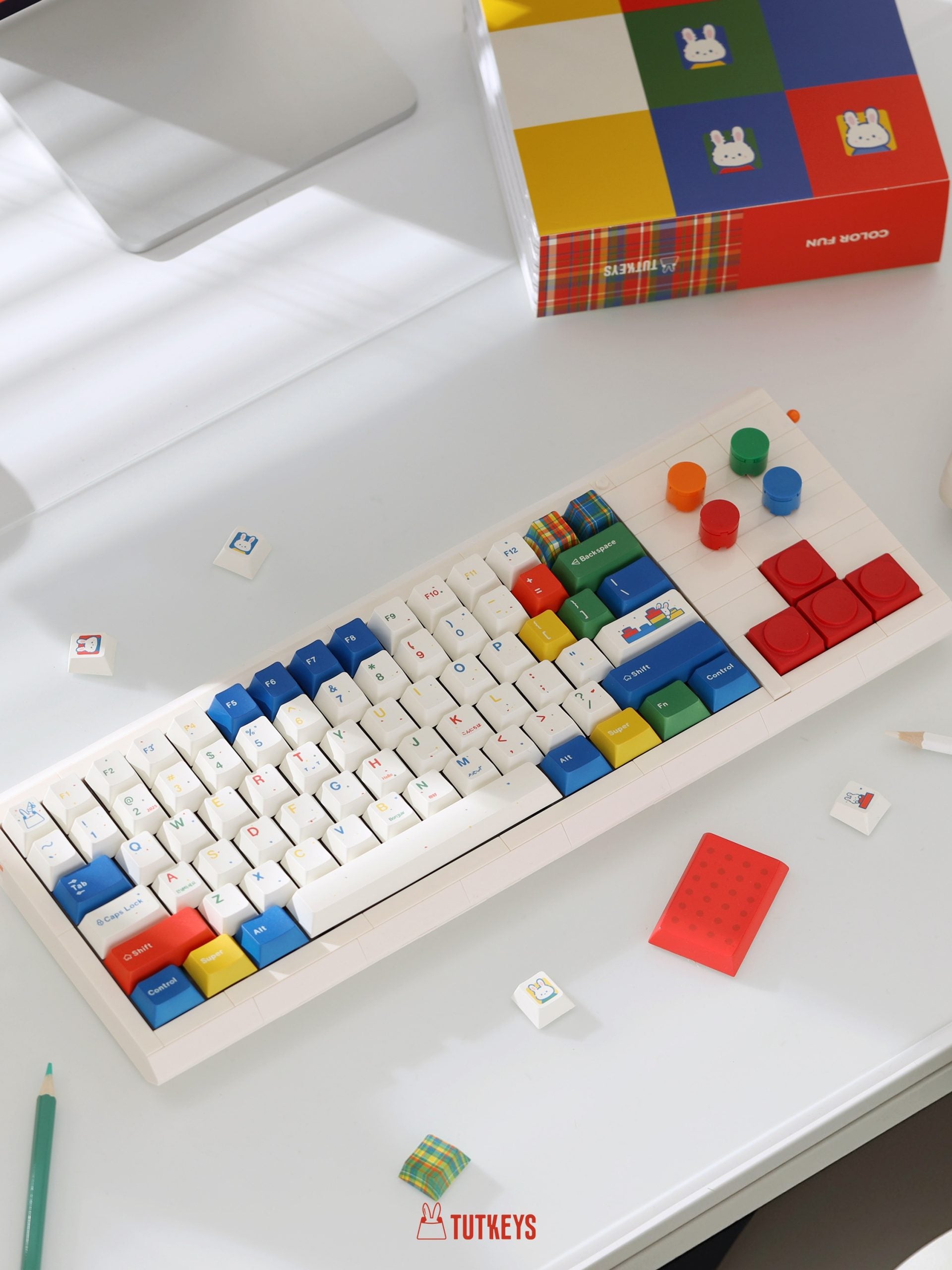 The Tutkeys Color Fun Keycaps collection injects vibrant flair and expressive character into your mechanical keyboard setup. Each set is crafted with bright colours and fun accents, perfect for custom builds, gaming rigs, and creative workspaces. Made with durable materials and lively design choices, these keycaps not only look great but also deliver tactile performance and long-lasting legends. Colour Fun keycaps allow you to customise your board with personality and style while preserving everyday comfort and usability.