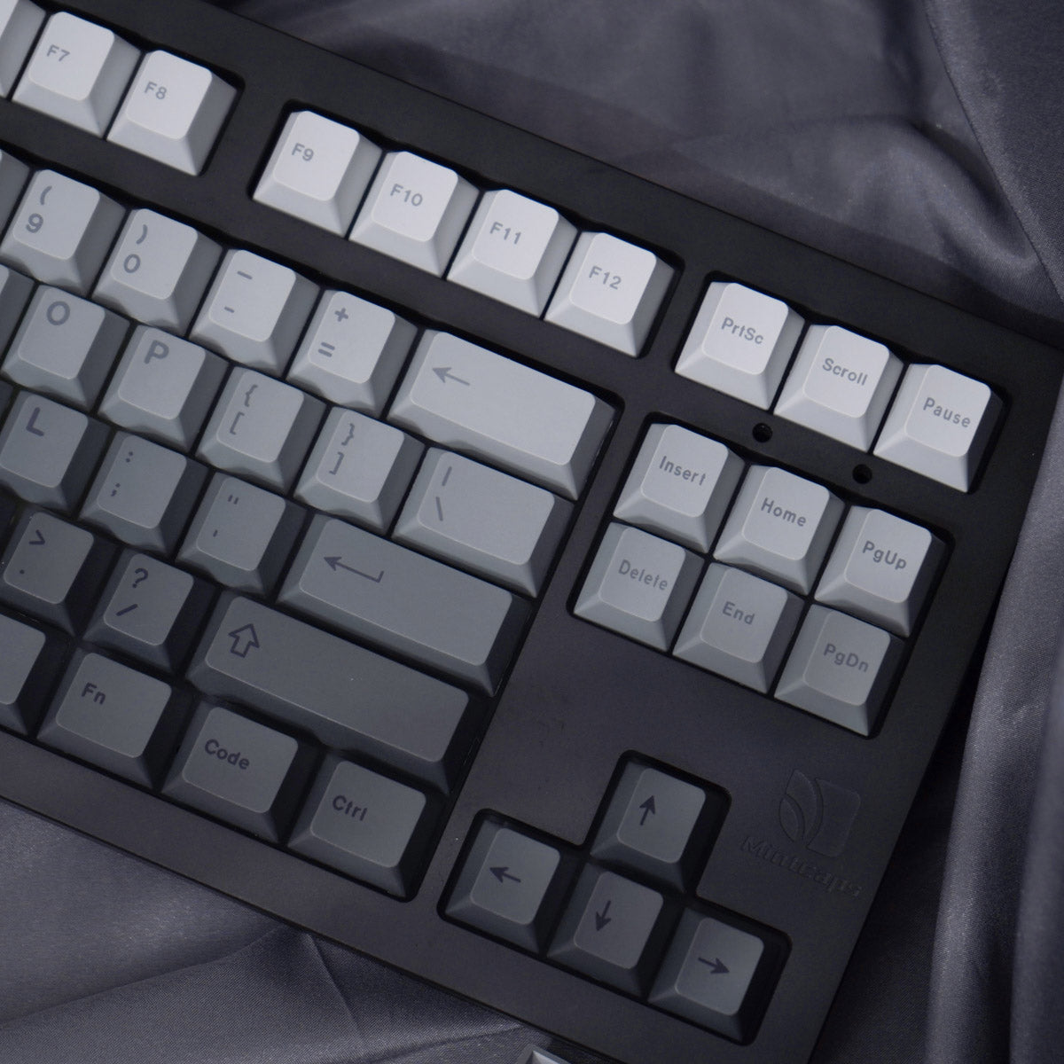 Customize your keyboard with this grey gradient PBT set - choose between classic top-printed or stealthy side-engraved legends. Complete 125-key coverage for all standard layouts.
