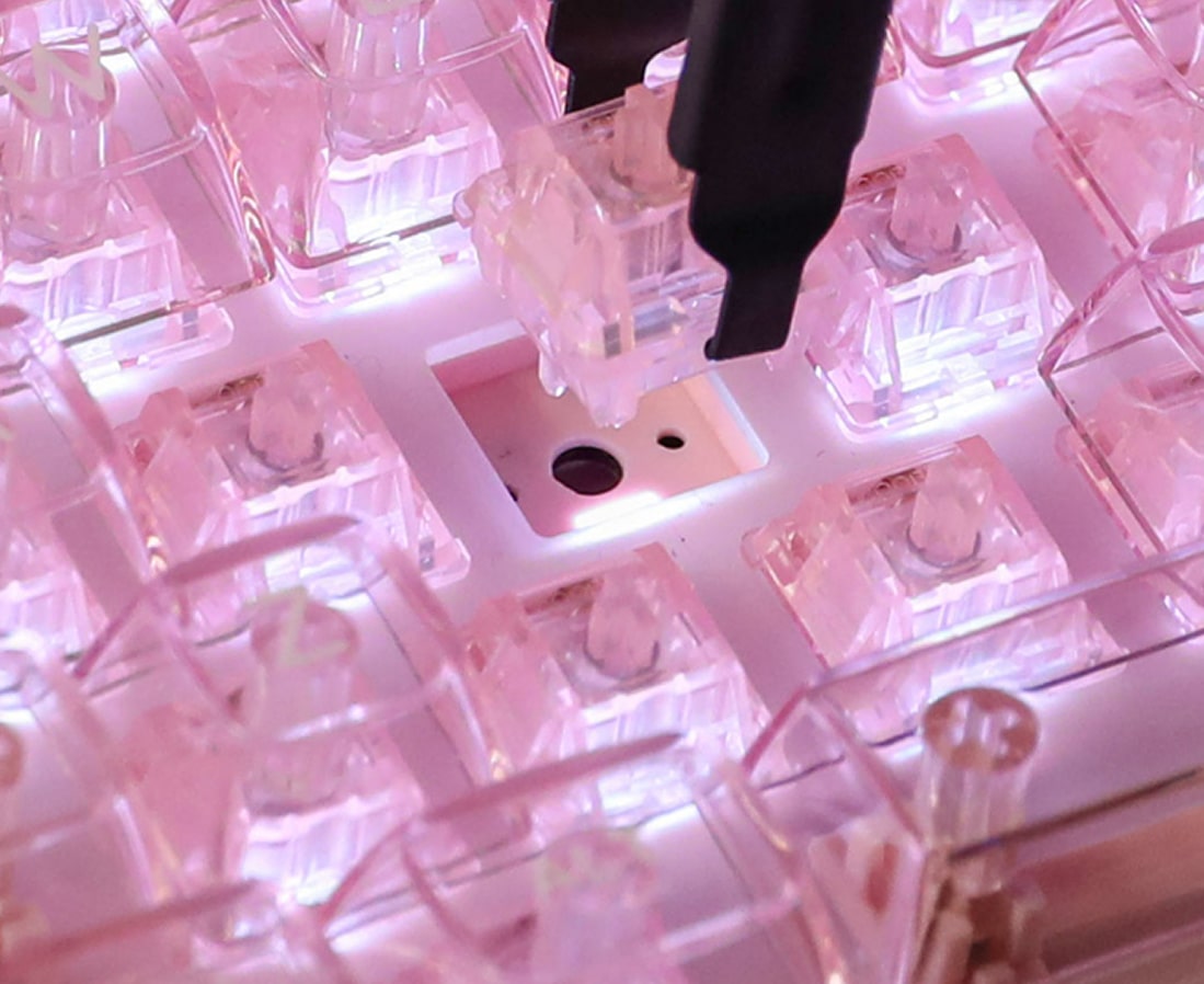 KiiBOOM provides three distinct proprietary linear switches, all featuring five-pin compatibility, hot-swap sockets, and palladium-plated contact points for rapid response and longevity.