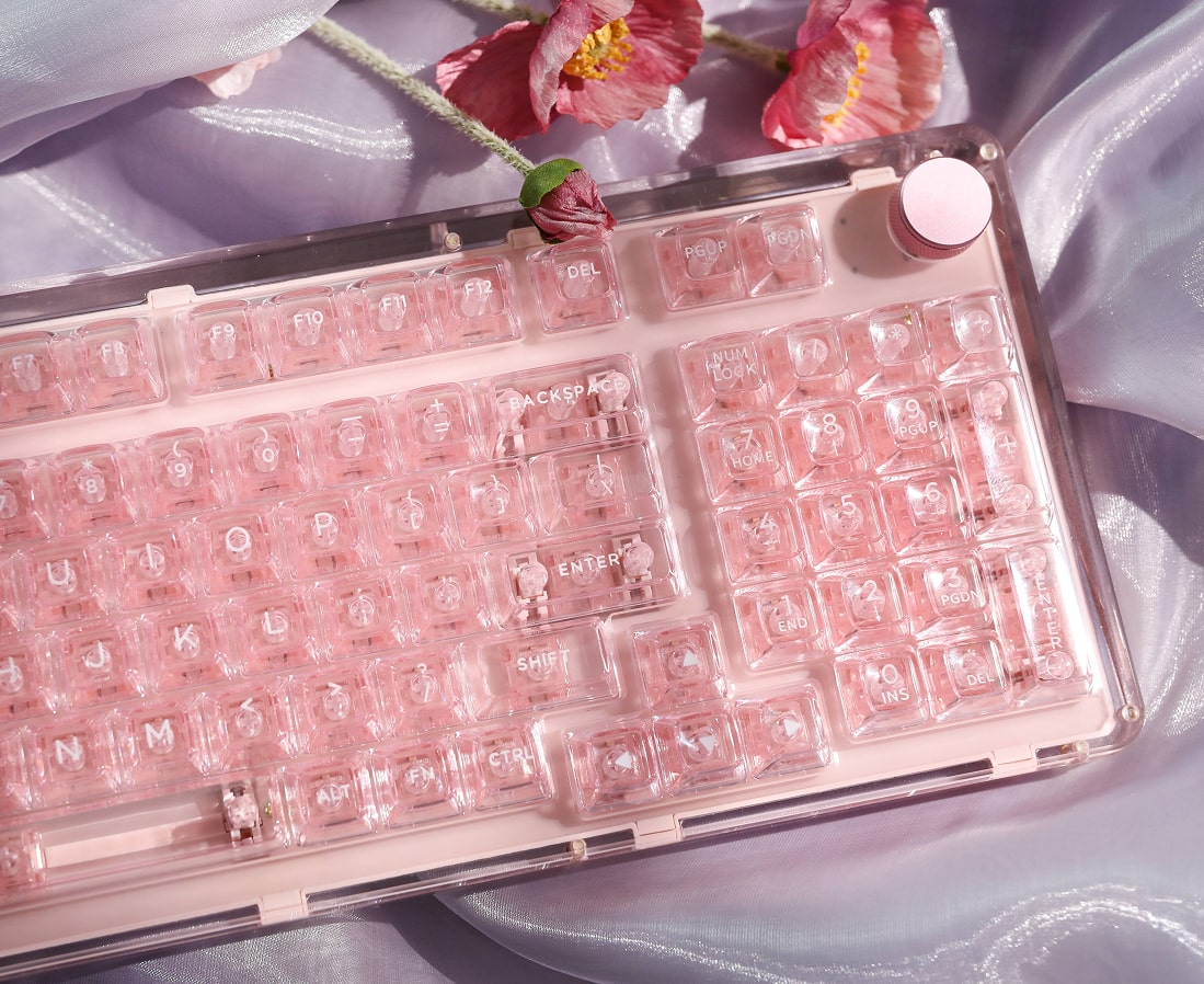 Featuring a premium acrylic chassis equipped with a Polycarbonate plate and a complex acoustic stack for a next-level typing experience.