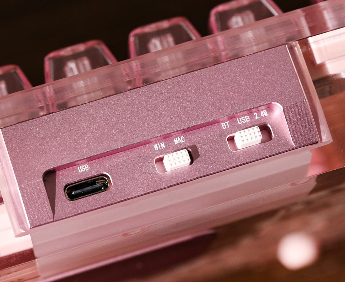 USB-C Wired, Bluetooth 5.0, and 2.4GHz Wireless modes with full programmability across all connections.