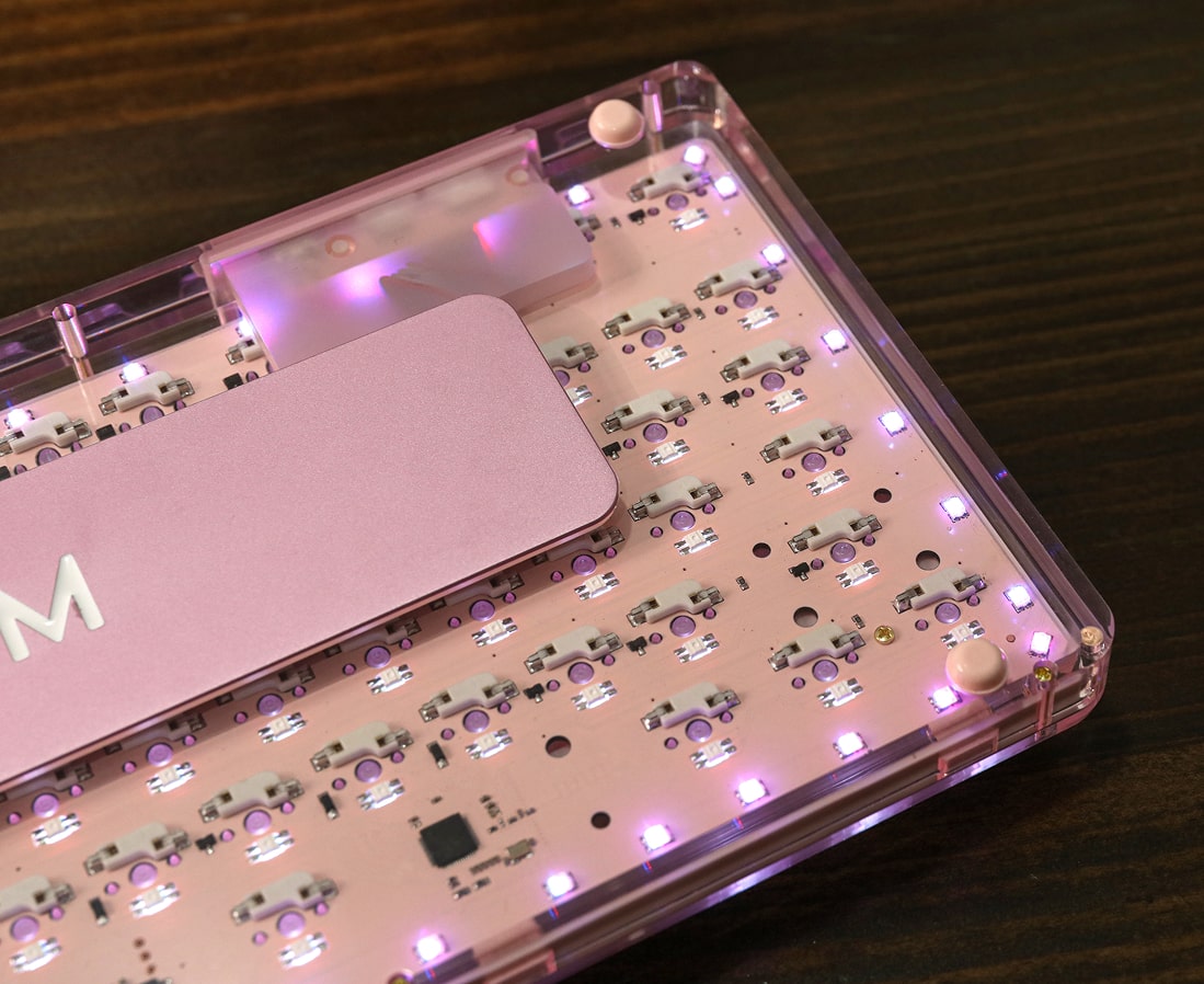Poron Padding and IXPE Switch Foam work to isolate the switches and eliminate unwanted high-frequency resonance. Furthermore, PET Acoustic Film sits directly under the PCB to smooth out the sound signature.