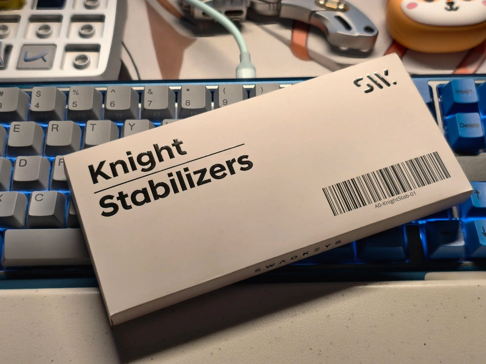 The Swagkeys SW Knight Stabilisers are precision-engineered mechanical keyboard stabilisers designed to deliver a clean, consistent keystroke on larger keys such as the spacebar, enter, shift, and backspace. Manufactured by Swagkeys, these stabilisers focus on reducing wire rattle and uneven resistance while maintaining a smooth, controlled feel. Ideal for custom keyboard builds and enthusiast upgrades, SW Knight stabilisers help improve both typing sound and overall key stability when properly tuned.
